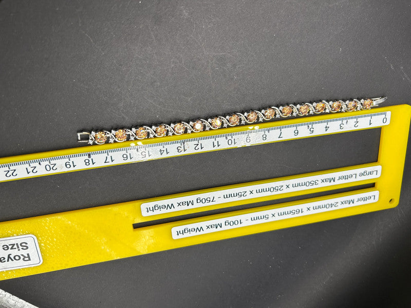 A substantial and elegant bracelet crafted 10 carat white gold plated. This lovely piece features bright, clear stones, set in 10ct white gold plate. Please note, the clear stones test as GLASS on a gem tester (they are not diamonds). Material: White gold plated. Stones: Glass (tested) Colour: White Gold / Silver Tone with clear stones. Total Weight: Approx. 19.4 grams. Condition: Amazing condition and it sparkles constant. Truley beautiful bracelet. Please see photos. A fantastic opportunity to own a heavy, genuine white gold plate bracelet at a great price. Perfect for someone who loves a weighty piece with sparkle