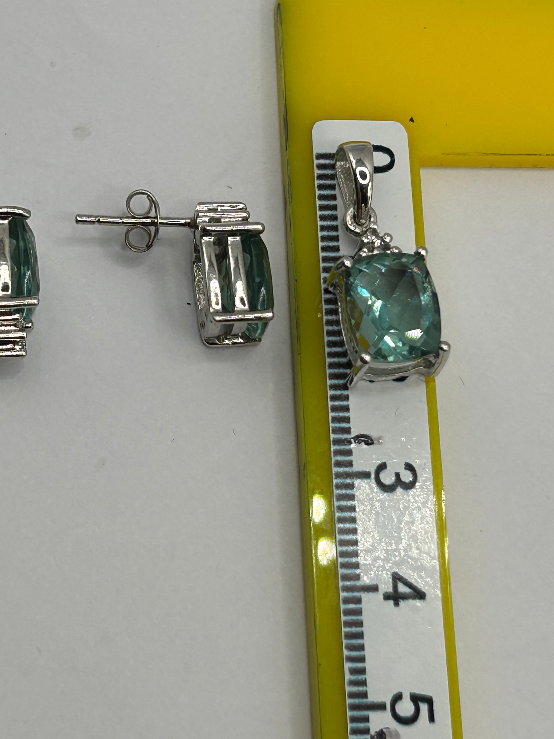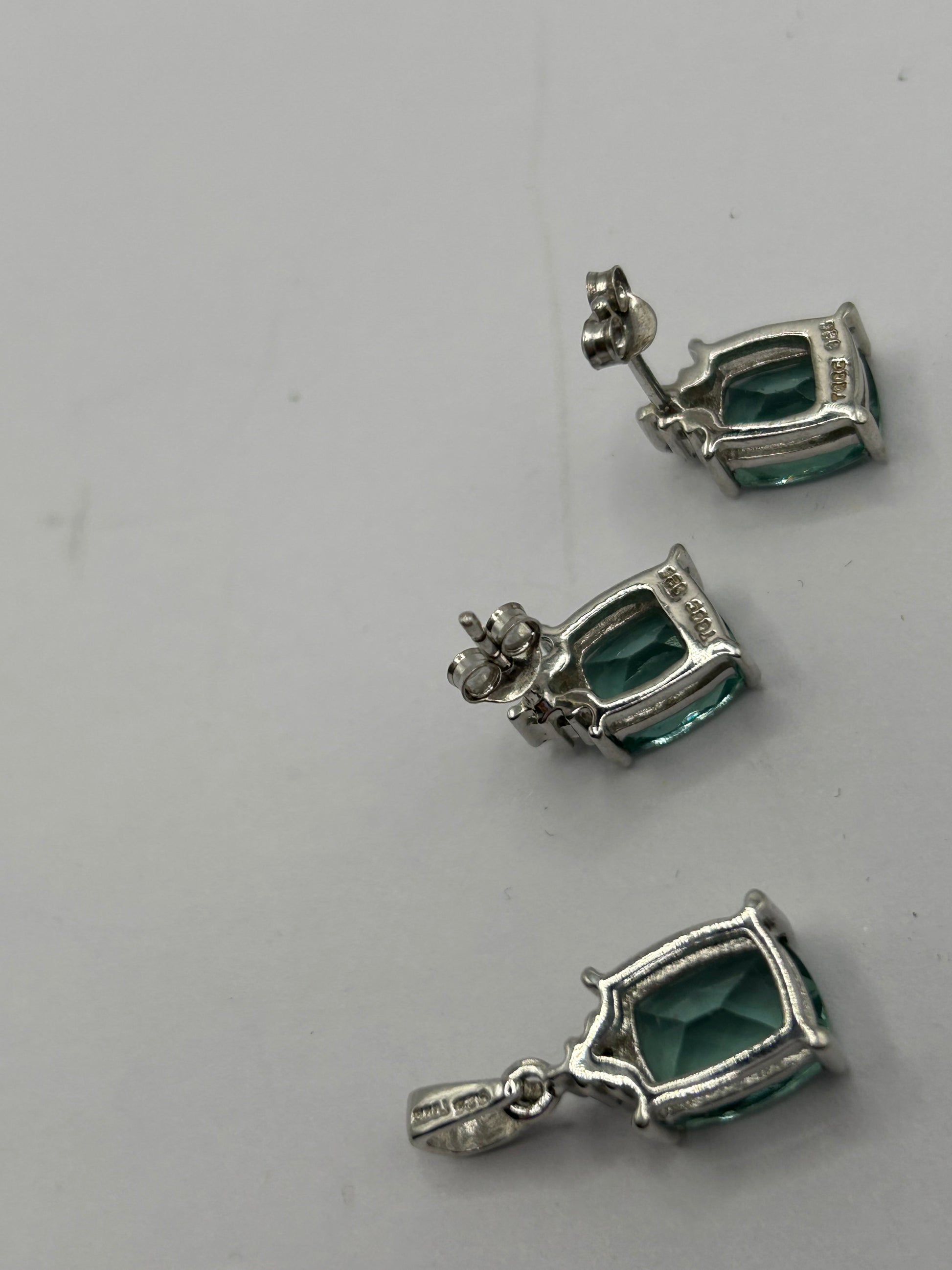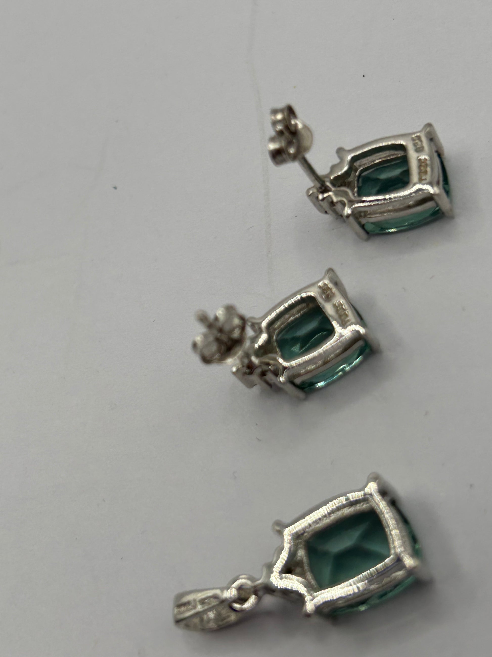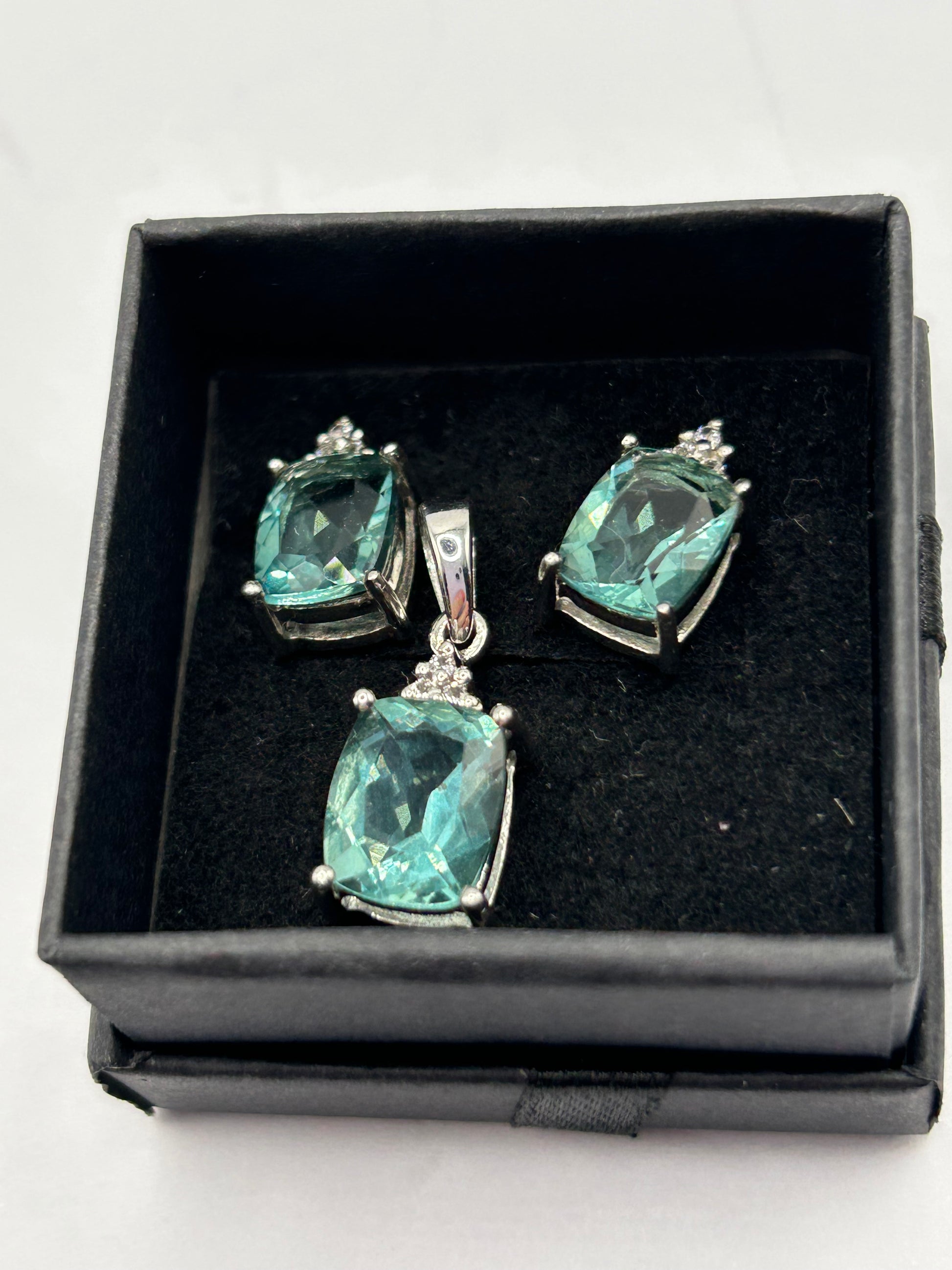 Tucson Green Fluorite stones (totaling 6.87cts for 2 stones sized 16x8mm, and 4.94cts for 1 stone sized This complete set is perfect for adding a radiant pop of natural colour and sophistication to any outfit, or as an unforgettable gift for a gemstone lover or collector. Collection: Annabella Edition: Limited Edition - No. 1 of 185 Pieces Certified On: 25/06/2015 Metal: Sterling Silver Gemstones: Natural Tucson Green Fluorite & Natural White Topaz (11.97ct ATGW) Set Includes: Ring, Pair of Earrings, Pendant Style: Modern Matching Jewellery Set / Limited Edition In excellent condition, a rare, authenticated, and sparkling treasure ready to be cherished by a discerning collector!