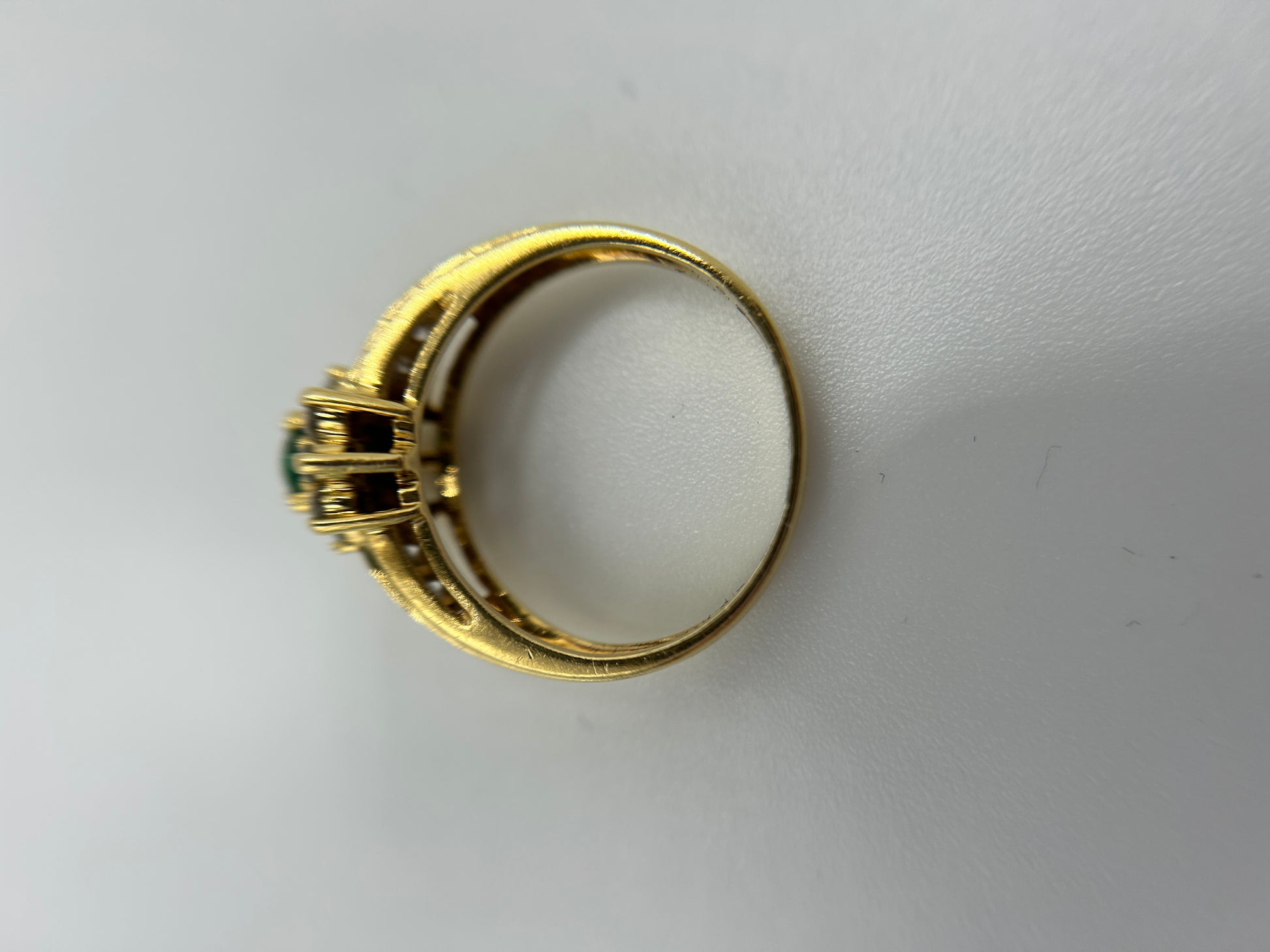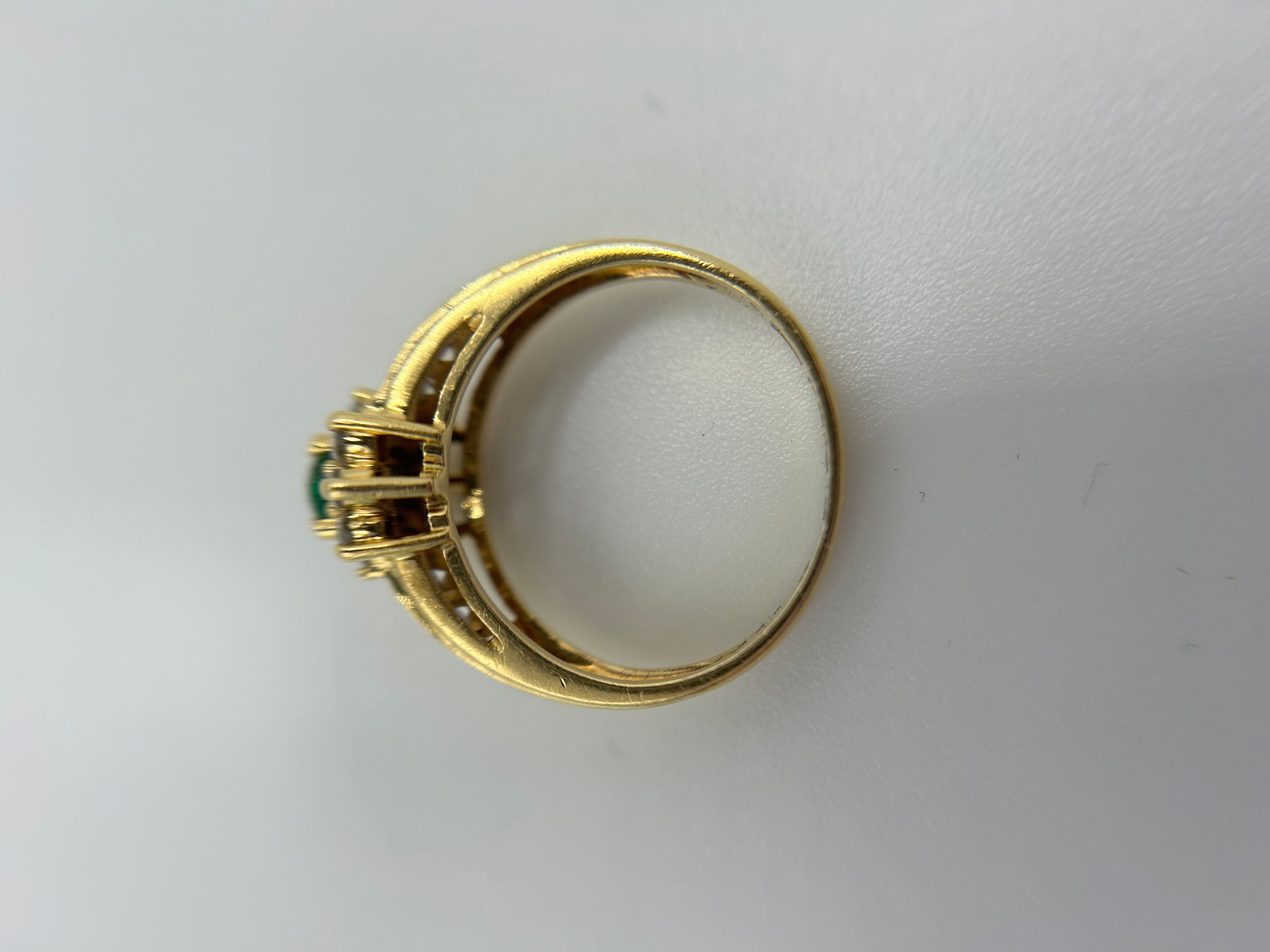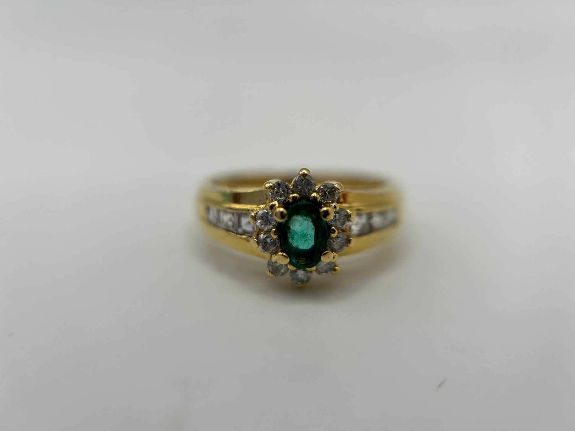 18ct Yellow Gold Emerald & Diamond Cluster Ring (3.15g) Vintage