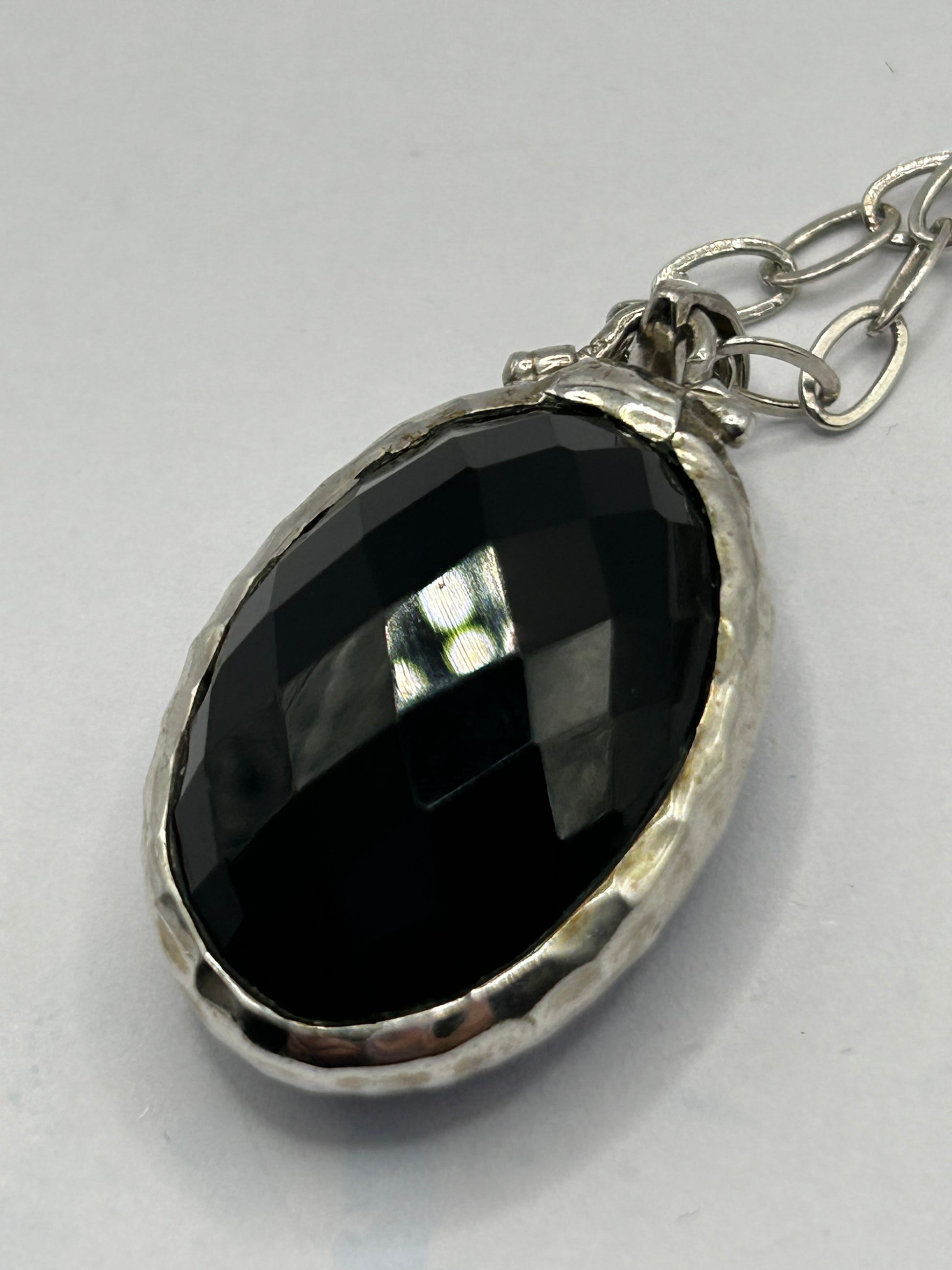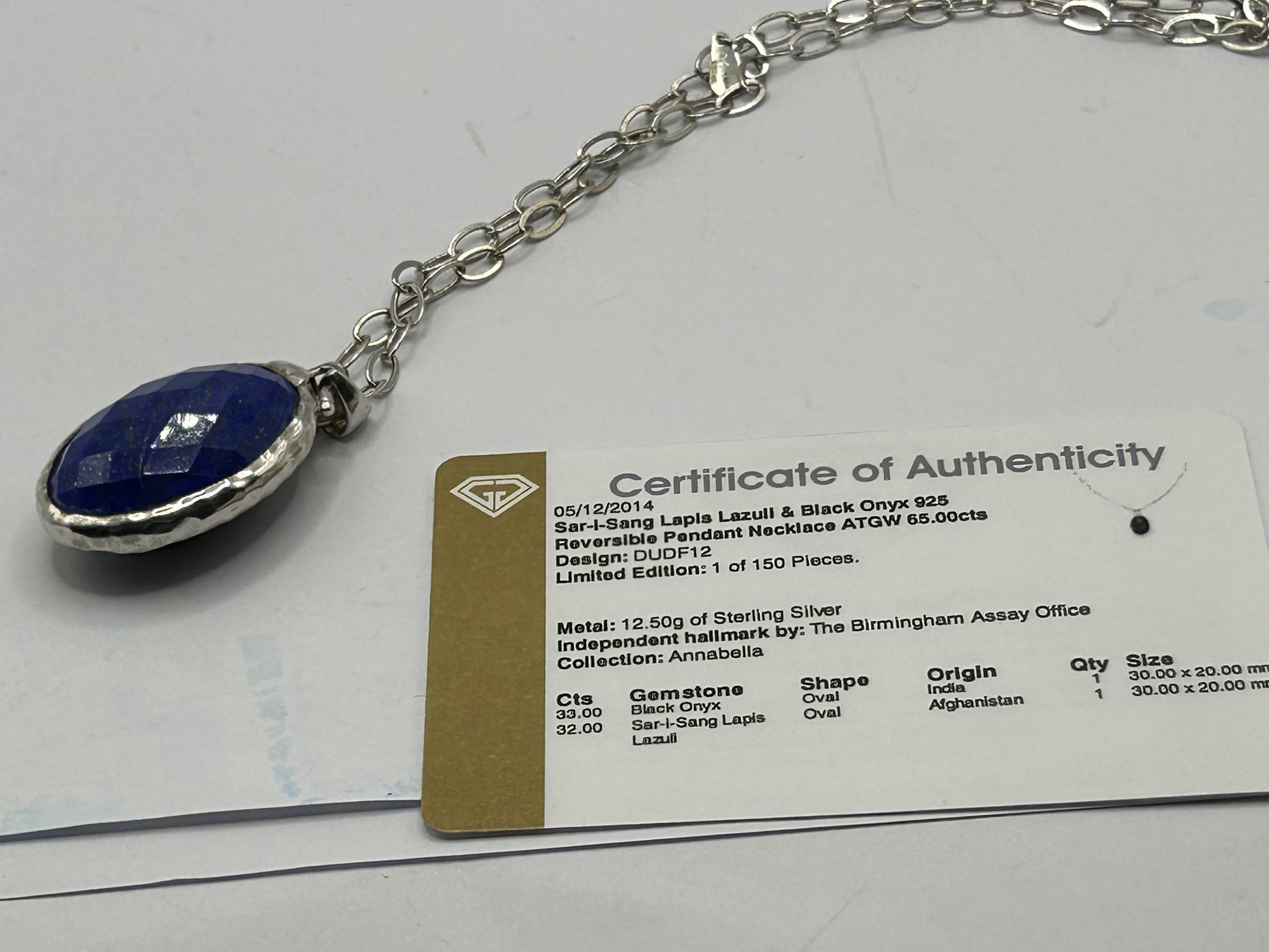 Sar-i-Sang Lapis Lazuli & Onyx Reversible Silver Pendant & 31" Chain - 26.07g - With Certificate