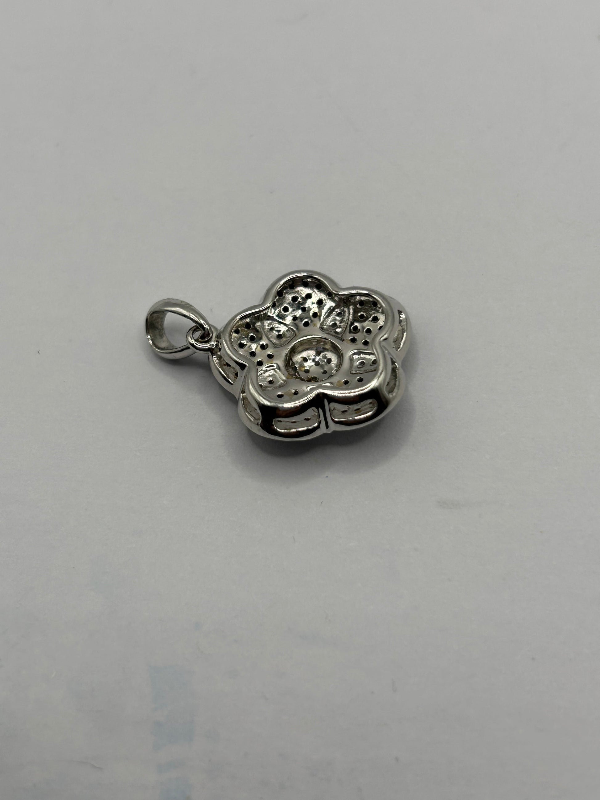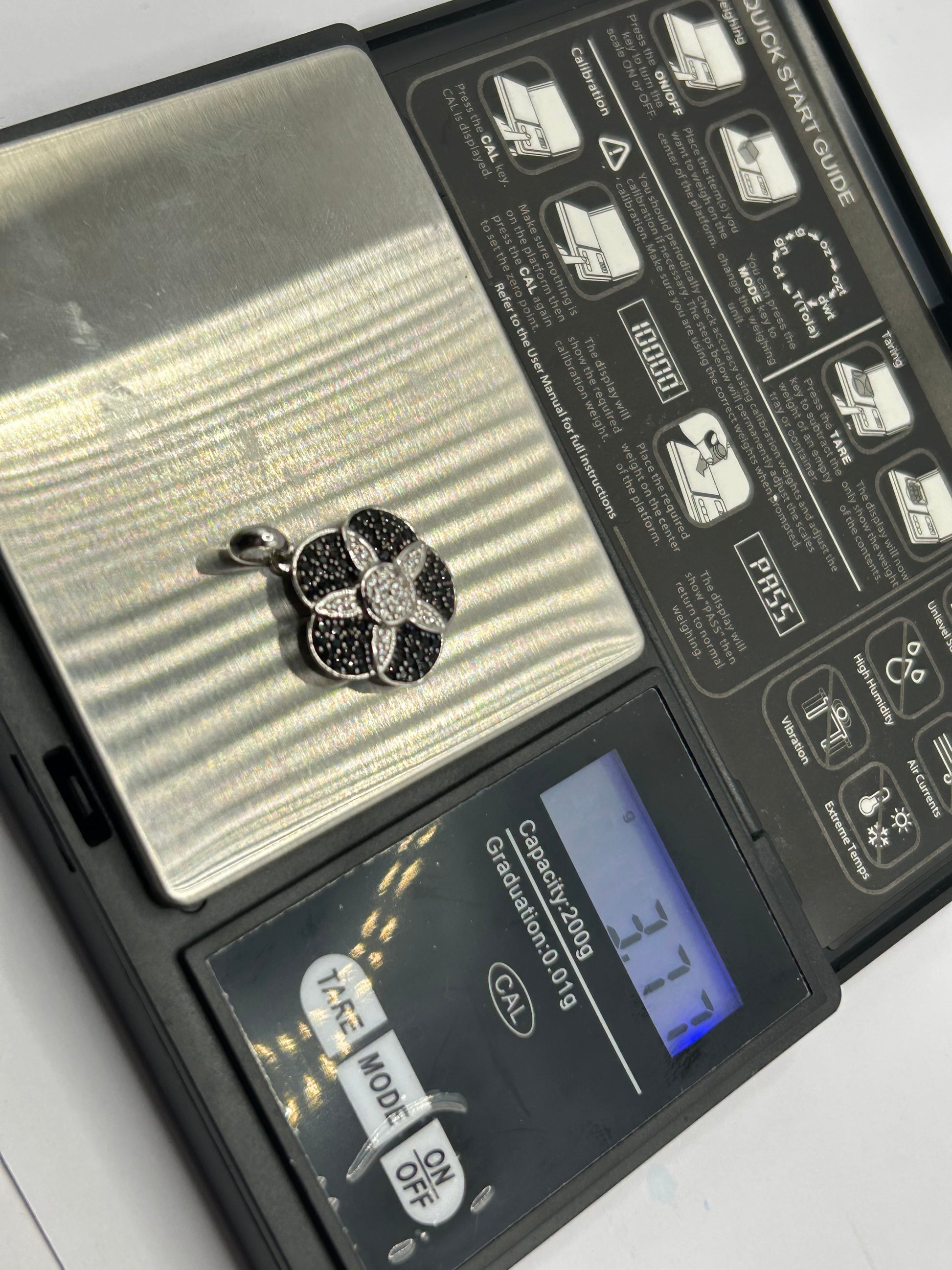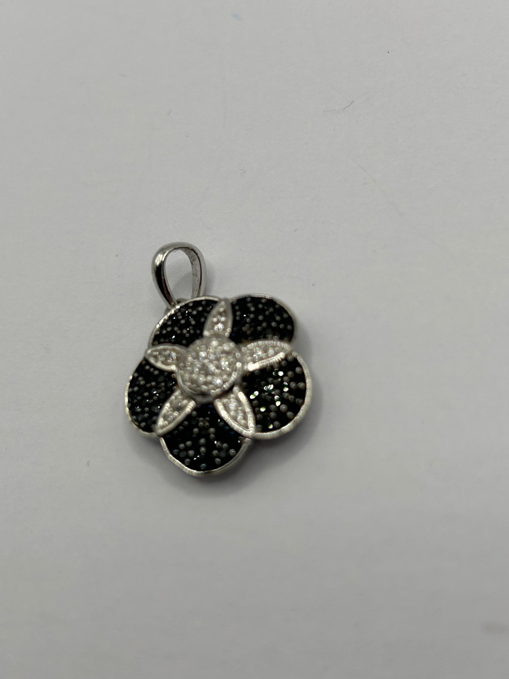 Sparkling 2.36ct Black Spinel & White Zircon Sterling Silver Flower Pendant (3.86g)
