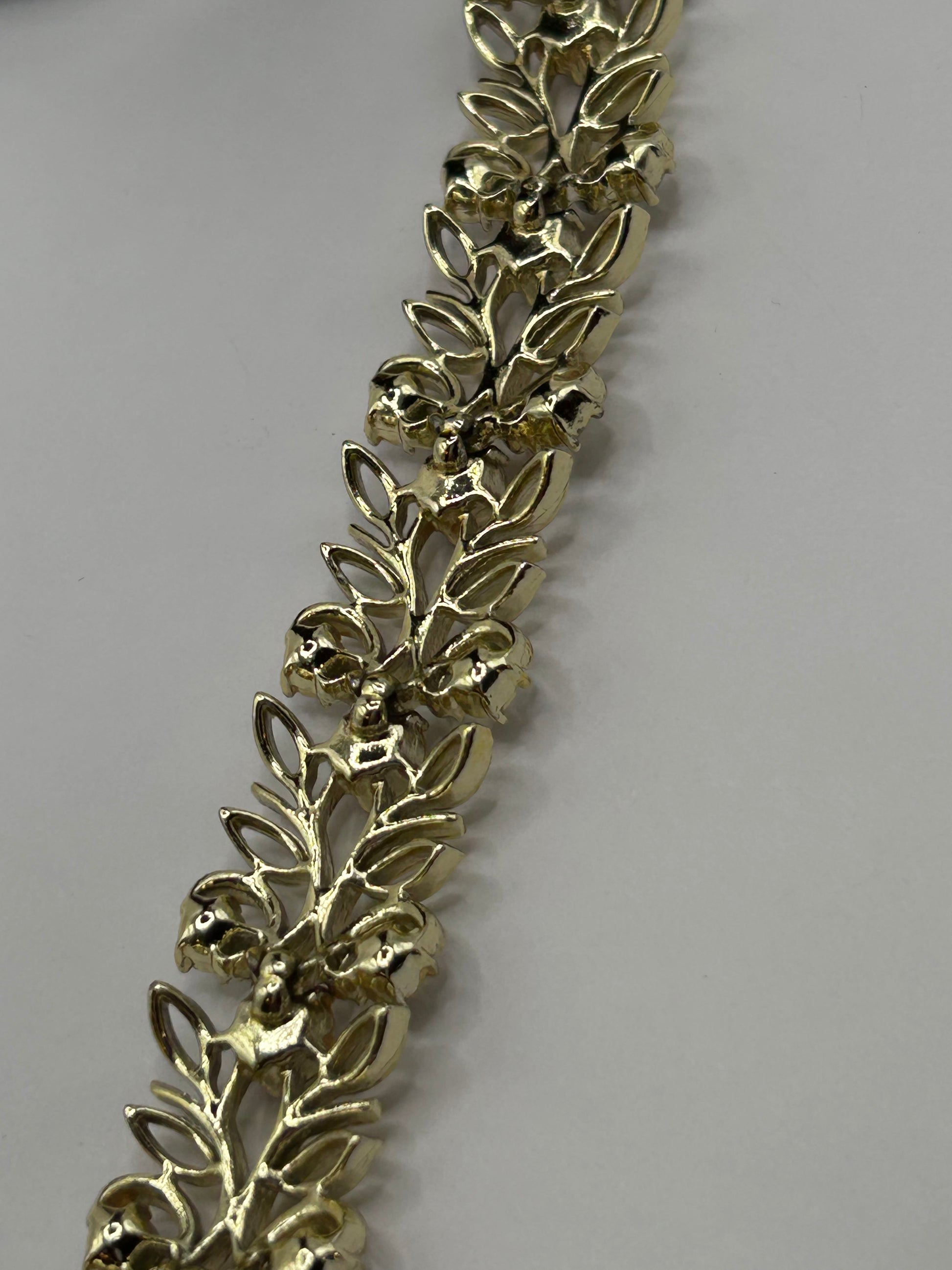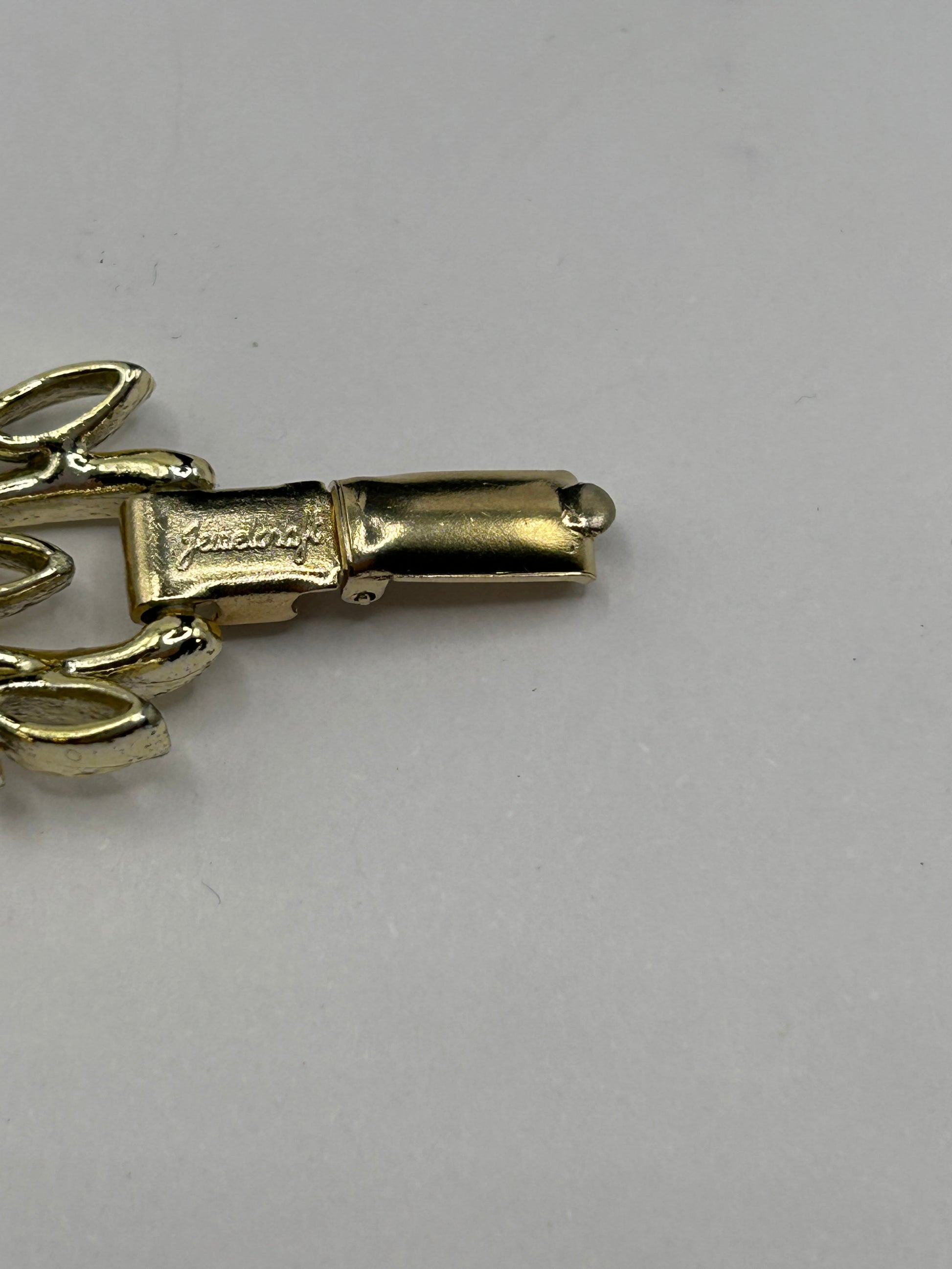 Vintage Signed Jewelcraft Gold Tone Leaf & Rhinestone Bracelet 7"