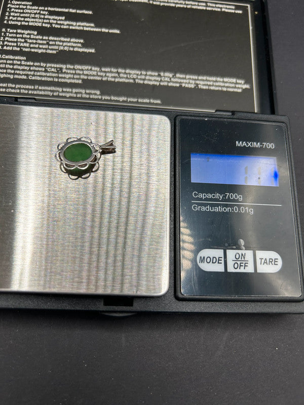 Vintage-Style Sterling Silver & Jadeite Pendant (Approx. 2cm)